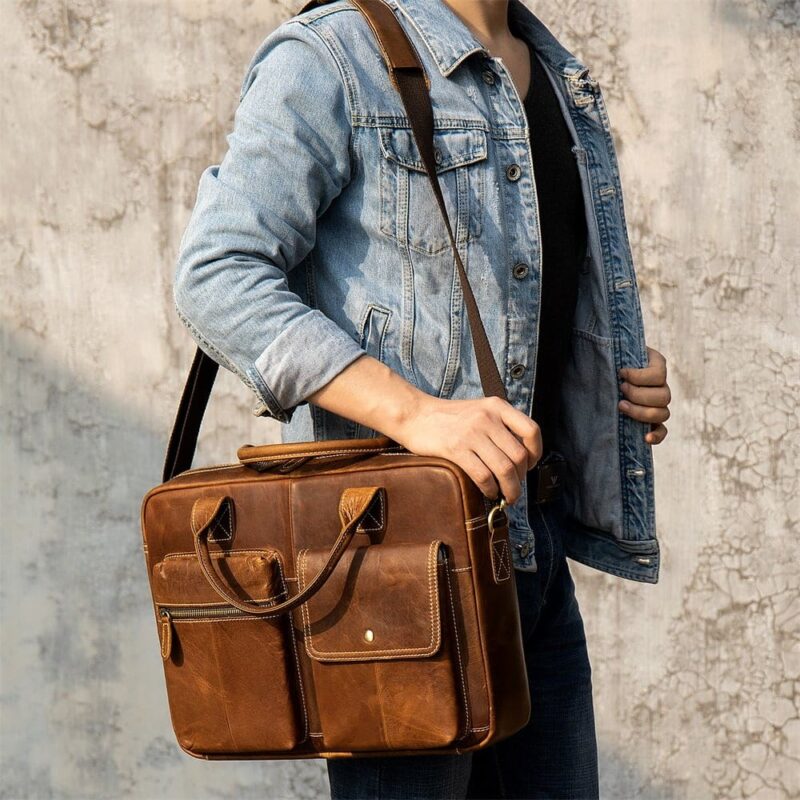 ▶ Αυτός ο χαρτοφύλακας είναι κατασκευασμένος από υψηλής ποιότητας γνήσιο δέρμα ειδικής επεξεργασίας διετούς παλαίωσης, προσφέροντας ένα μοναδικό και κομψό στυλ. Η διθέσια τσάντα αγγελιοφόρων είναι ιδανική για καθημερινή χρήση και διαθέτει ευρύχωρο εσωτερικό χώρο για να φυλάξετε τα απαραίτητα αντικείμενα. Μπορεί να χρησιμοποιηθεί ως χιαστί τσάντα, τσάντα ώμου ή ακόμη και ως δερμάτινος χαρτοφύλακας.