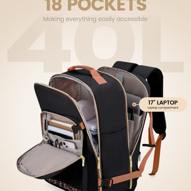Σακίδιο ταξιδιού για γυναίκες 40L Carry on 17,3″ WB2029 black leopard
