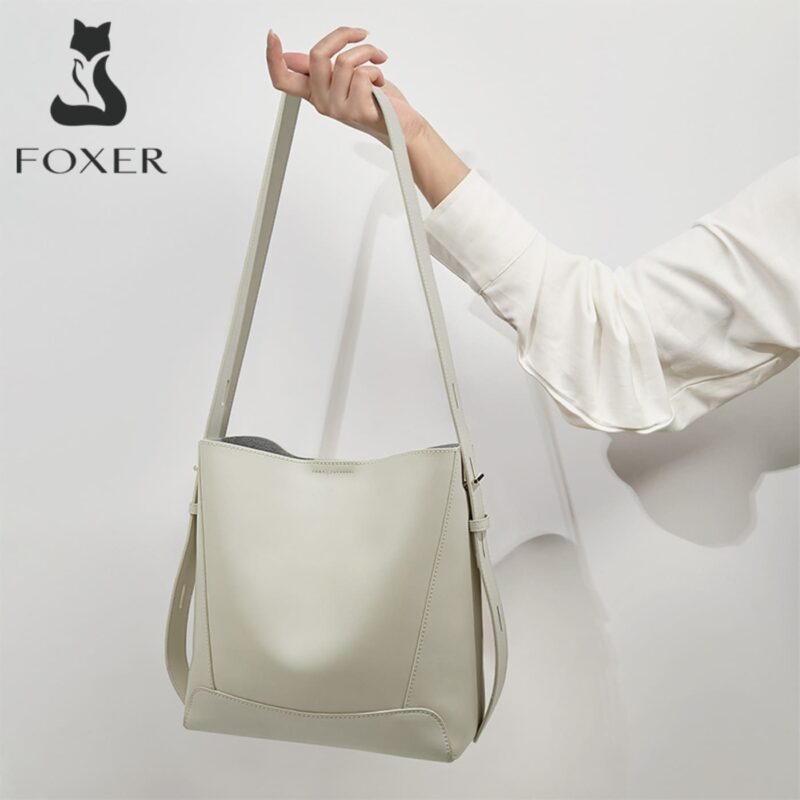 Δερμάτινη Γυναικεία Τσάντα Shopper ‘Ωμου Foxer 9136015F άσπρο