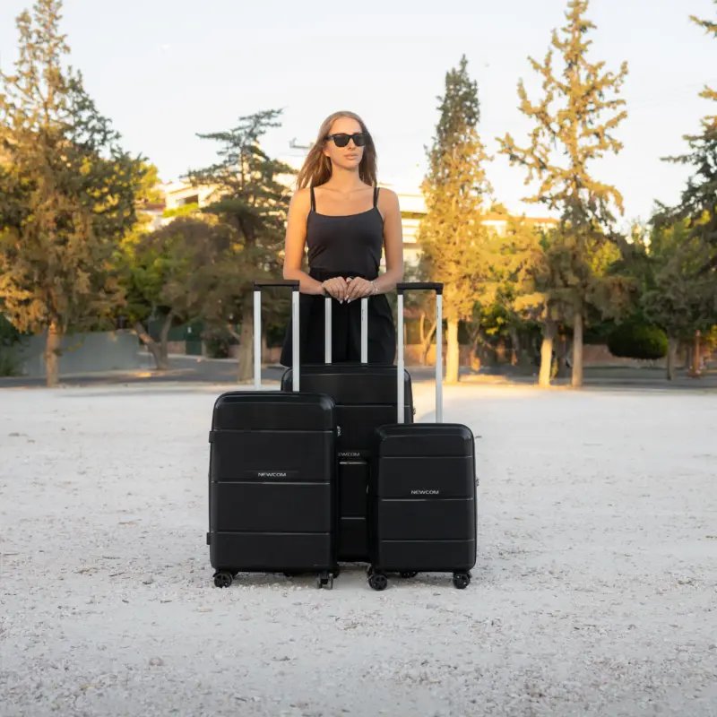 Βαλίτσα σκληρή Newcom (PP) (σετ 3 τεμαχίων) N1595 μαύρο