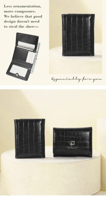 Η διαχρονική μαύρη απόχρωση, ο elegant σχεδιασμός και η καθαρή minimal γραμμή κάνουν αυτό το πορτοφόλι μια εξαιρετική επιλογή δώρου. Ταιριάζει σε κάθε ηλικία και απογειώνει κάθε εμφάνιση με διακριτική πολυτέλεια.
