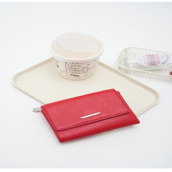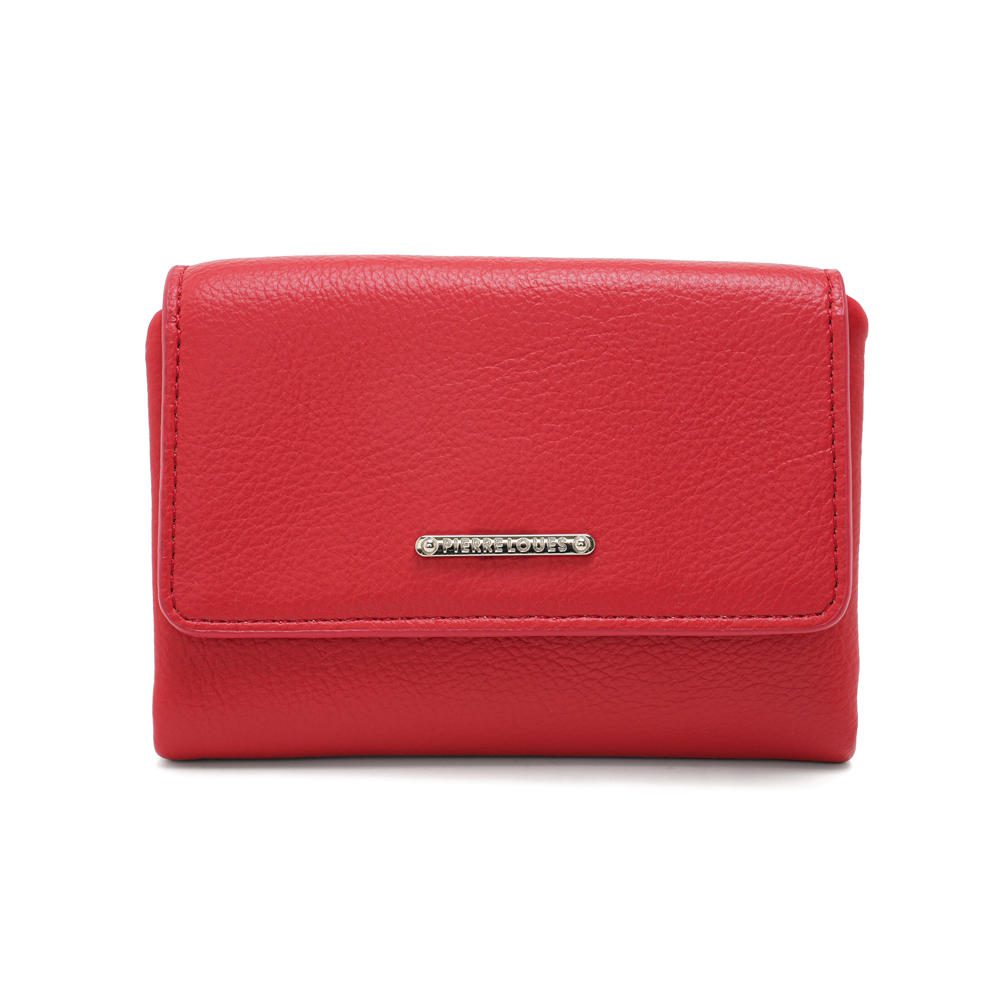 Μικρό πορτοφόλι γυναικείο Pierre Loues σε κόκκινο χρώμα, με θήκες για κάρτες, χαρτονομίσματα και κέρματα. Ελαφρύ, πρακτικό και κομψό για καθημερινή χρήση.