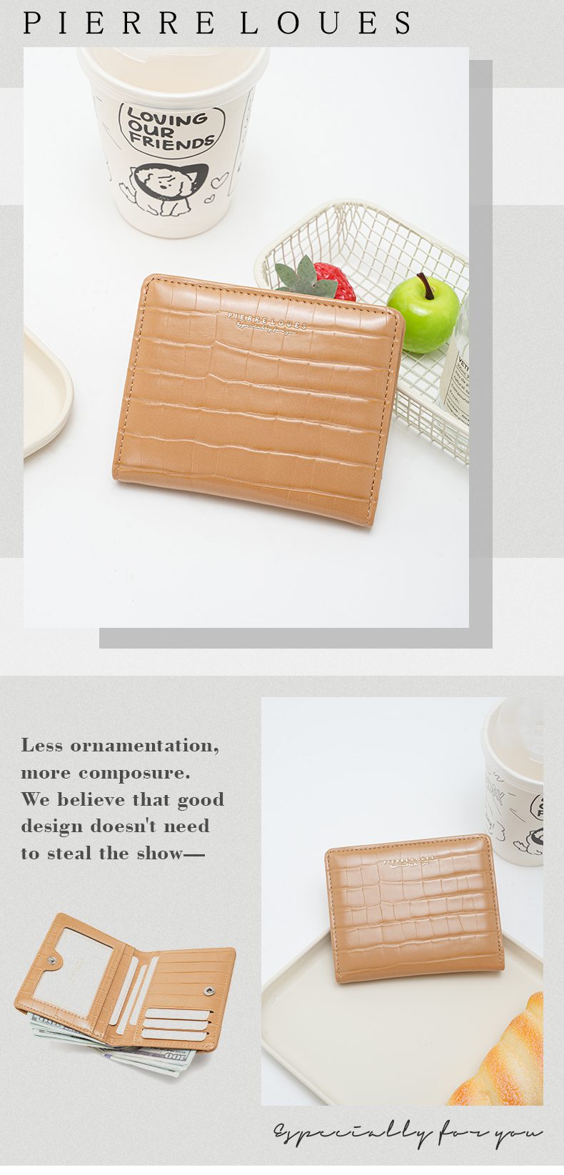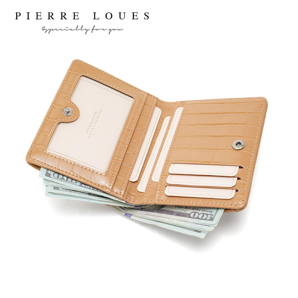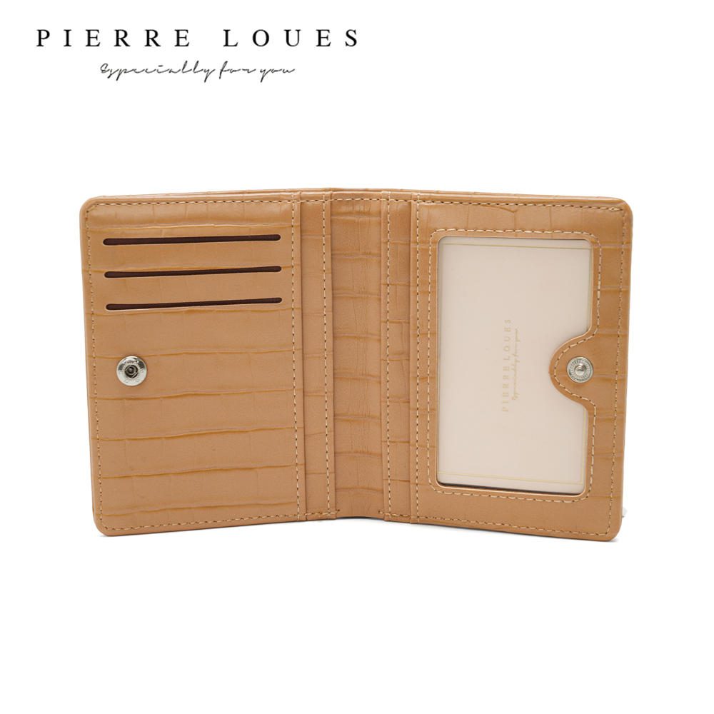 Το μικρό πορτοφόλι Pierre Loues συνδυάζει κομψότητα και άνεση. Με croco υφή, πολλές θήκες για κάρτες, διάφανη θέση ταυτότητας και πρακτική εξωτερική θήκη με φερμουάρ, γίνεται ιδανικό για κάθε τσάντα.