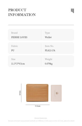Η εκλεπτυσμένη μπεζ απόχρωση, σε συνδυασμό με την ανάγλυφη croco υφή, δημιουργεί ένα πορτοφόλι μικρών διαστάσεων που δείχνει ακριβό και στιλάτο. Το διακριτικό λογότυπο Pierre Loues προσθέτει τη σωστή δόση πολυτέλειας, χωρίς να γίνεται έντονο. Είναι ένα μικρό πορτοφόλι που ταιριάζει σε κάθε τσάντα και κάθε καθημερινό look.