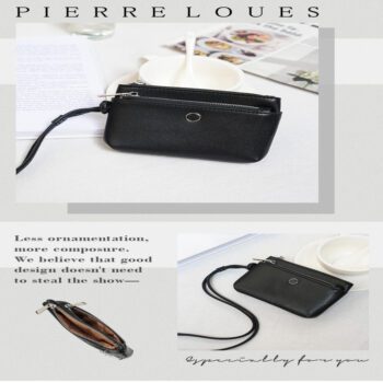 Η μαύρη απόχρωση χαρίζει μια καθαρή, μοντέρνα εικόνα, ενώ η υφή του υλικού προσθέτει premium χαρακτήρα. Το διακριτικό λογότυπο Pierre Loues στο μπροστινό μέρος ενισχύει την κομψότητα και κάνει το πορτοφόλι να φαίνεται πιο ακριβό από όσο είναι. Επιπλέον, η μεταλλική αλυσίδα με τον κρίκο δίνει μια πρακτική λύση: μπορείς να το κρεμάς στα κλειδιά σου ή να το ασφαλίζεις μέσα στην τσάντα.
