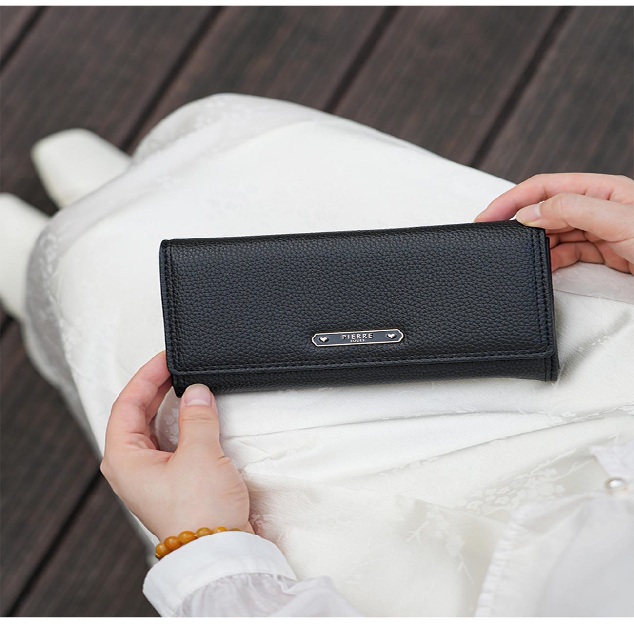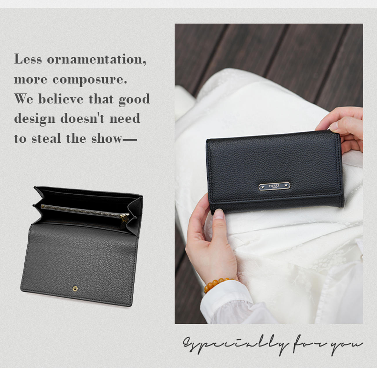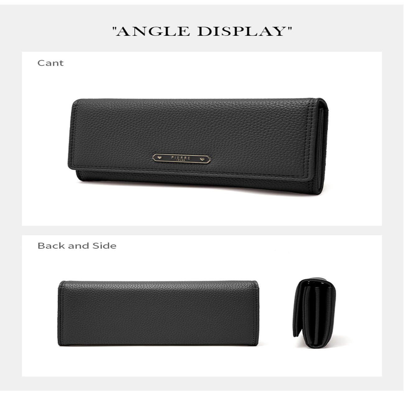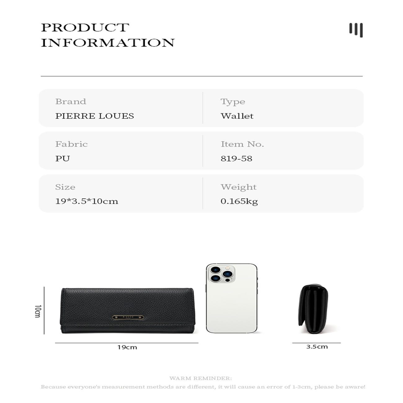 Κομψό και πρακτικό πορτοφόλι γυναικείο Pierre Loues σε μαύρο χρώμα, με πολλαπλές θήκες για κάρτες, χαρτονομίσματα και κέρματα. Minimal αισθητική και ανθεκτική κατασκευή για καθημερινή χρήση.