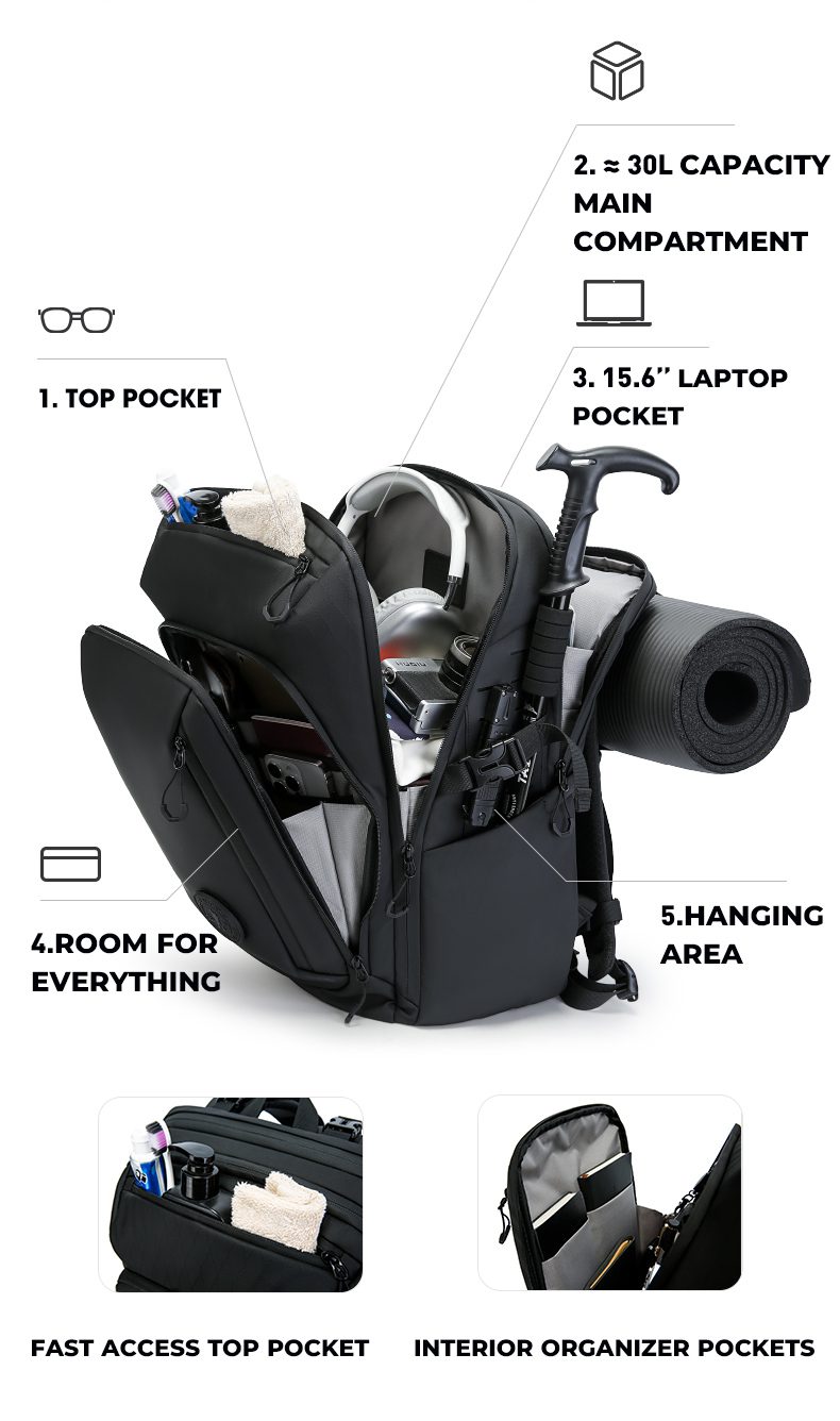 Με διαστάσεις 30x47x20cm και χωρητικότητα περίπου 30 λίτρα, το σακίδιο διαθέτει ειδική θήκη για laptop έως 15.6’’, θέση για tablet, καθώς και πολλαπλές εσωτερικές και εξωτερικές τσέπες που επιτρέπουν άψογη οργάνωση. Από έγγραφα και φορτιστές μέχρι αξεσουάρ και προσωπικά αντικείμενα, όλα βρίσκουν τη θέση τους.