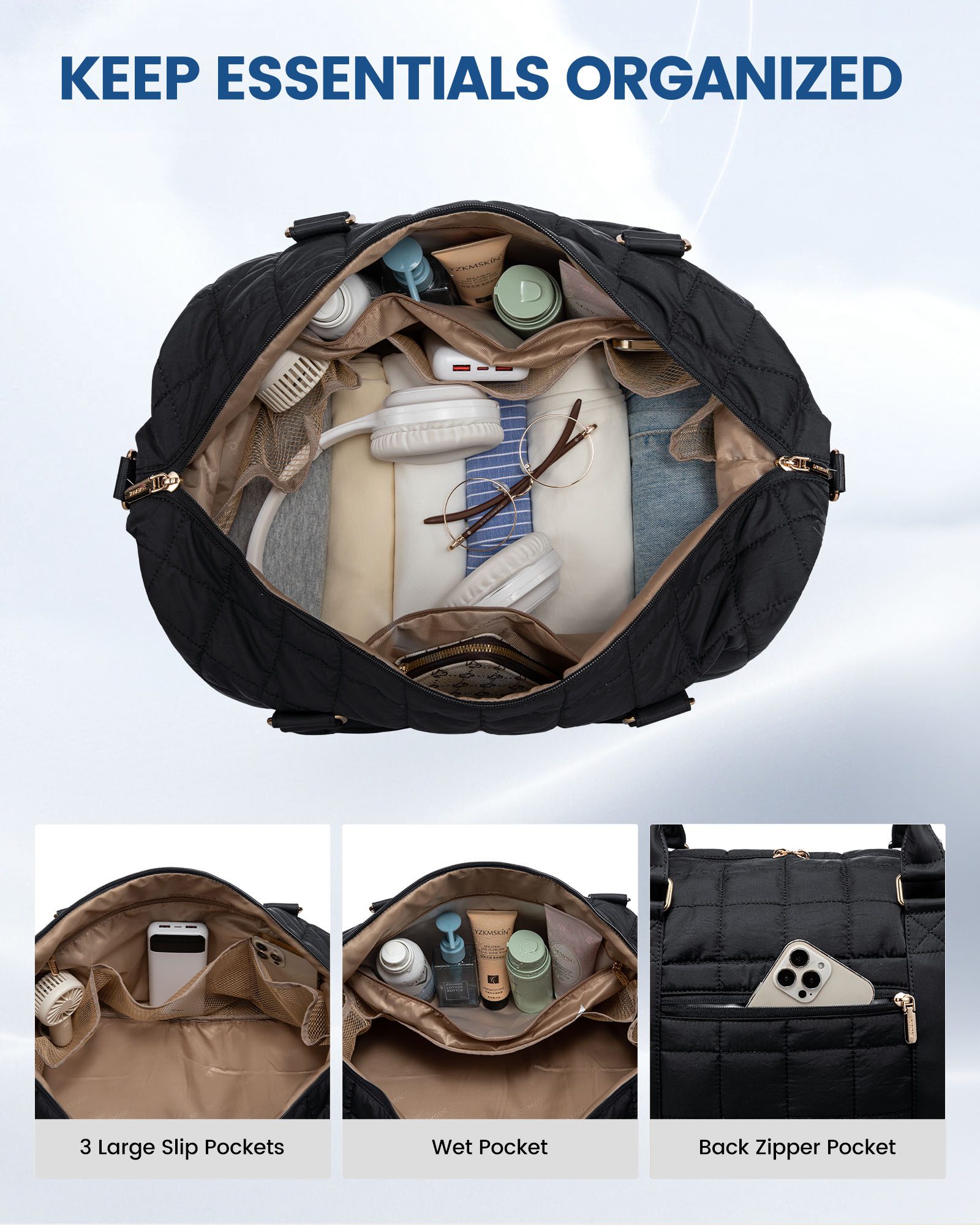 Το τσαντάκι καλλυντικών κρατά προϊόντα περιποίησης, συσκευές ή μικρά αξεσουάρ σε τάξη.