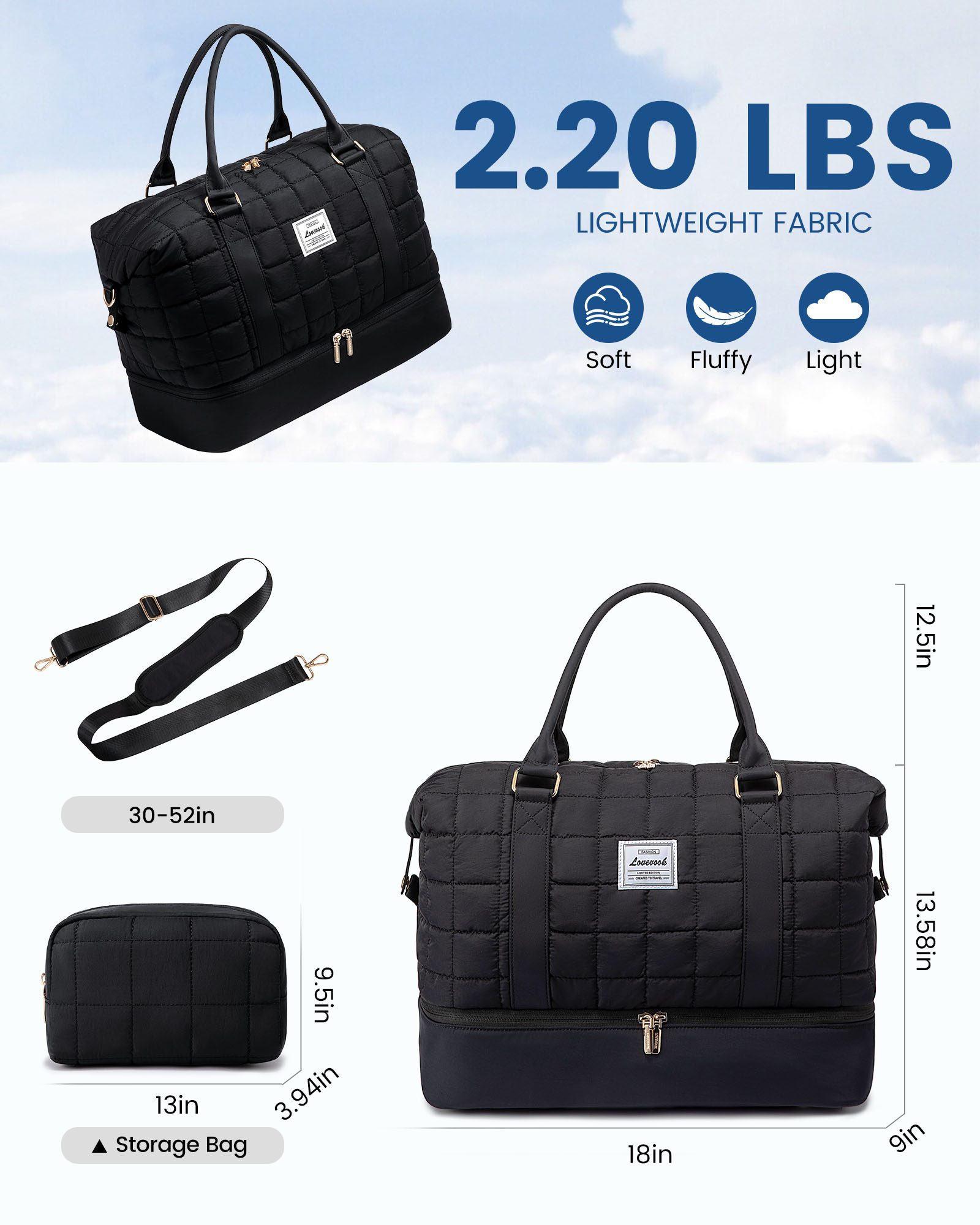 Ελαφρύς σάκος ταξιδιού με έξυπνες θήκες και ξεχωριστό διαμέρισμα για παπούτσια. Οργανώνεις εύκολα τα απαραίτητα και ταξιδεύεις άνετα, κάθε μέρα.