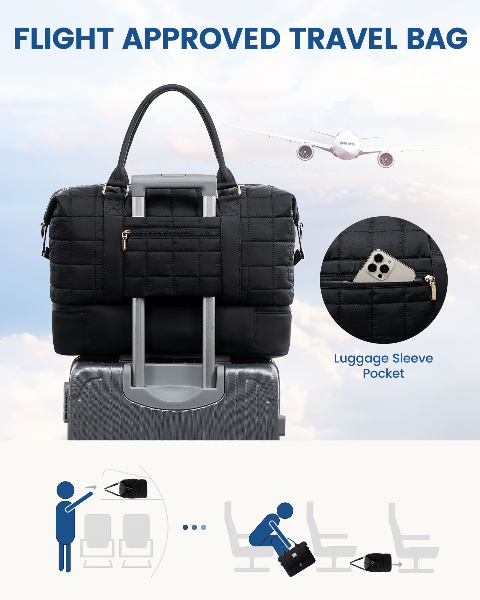 Ο σάκος ταιριάζει στα επιτρεπόμενα μεγέθη χειραποσκευής των περισσότερων αεροπορικών εταιρειών.