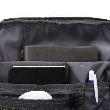 Η κύρια θήκη 8L χωράει iPad 9.5’’ και παράλληλα αφήνει χώρο για κινητό, power bank, κλειδιά αλλά και πορτοφόλι. Οι εσωτερικές θήκες οργανώνουν κάθε αντικείμενο, έτσι ώστε να τα βρίσκετε εύκολα. Επιπλέον, η κρυφή πίσω τσέπη προστατεύει τα πολύτιμα είδη σας, ενώ η πλαϊνή θήκη είναι ιδανική για μπουκάλι ή ομπρέλα.